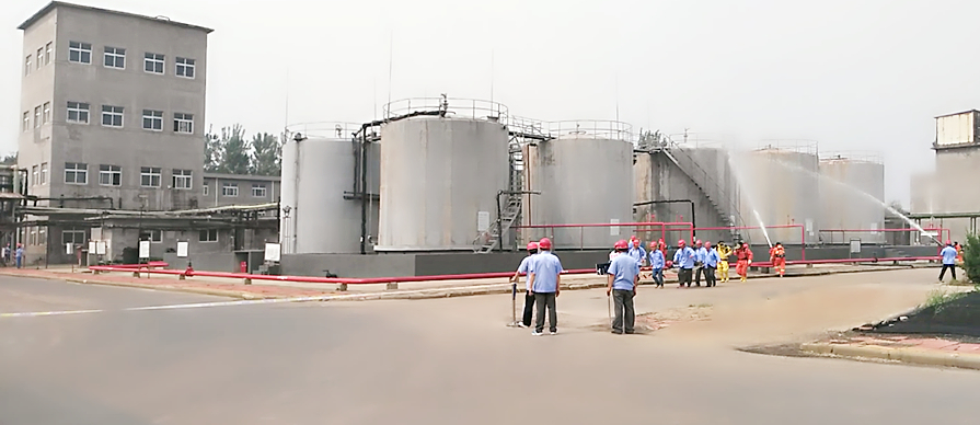 硝基苯車間巡檢員在例行巡檢時(shí)發(fā)現(xiàn)儲(chǔ)罐區(qū)苯三號(hào)罐閥門泄露,用對(duì)講機(jī)立即報(bào)告車間安全值班員。車間班組維修人員當(dāng)即到現(xiàn)場(chǎng)搶修,由于閥門泄露情勢(shì)比較嚴(yán)重,黃色的苯霧蔓延,隨時(shí)會(huì)發(fā)生著火危險(xiǎn)。帶隊(duì)班長(zhǎng)立即請(qǐng)示車間搶險(xiǎn)防爆隊(duì)支援搶修,在防爆搶修過程中,事態(tài)嚴(yán)重,一人暈倒。車間搶險(xiǎn)隊(duì)長(zhǎng)立即上報(bào)虹橋公司值班調(diào)度。值班調(diào)度迅泄漏應(yīng)急救援預(yù)案,各應(yīng)急救援小組人員迅速奔赴現(xiàn)場(chǎng)。虹橋公司搶險(xiǎn)防暴隊(duì)人員立即開啟四個(gè)應(yīng)急消防水泵,伴隨著警報(bào)聲,白色的水龍從四個(gè)方向“箭”似噴射向苯儲(chǔ)罐和泄露罐閥門著火點(diǎn),苯霧迅即被稀釋,搶修人員成功對(duì)泄漏閥門進(jìn)行了堵漏;同時(shí)保衛(wèi)警戒組拉起了隔離帶,勸導(dǎo)、疏散閑雜人員;醫(yī)療救護(hù)組抬出受傷人員至安全區(qū)迅速進(jìn)行初期救護(hù)……整個(gè)救援搶險(xiǎn)緊張有序地進(jìn)行演練完成。