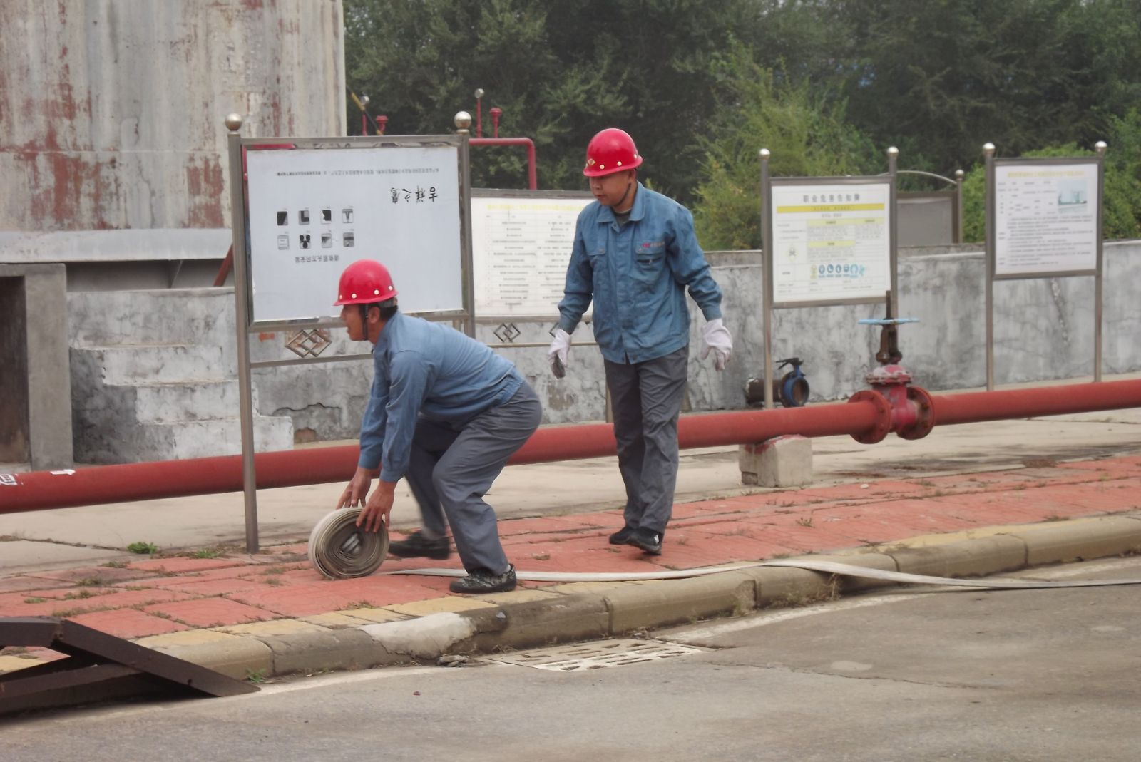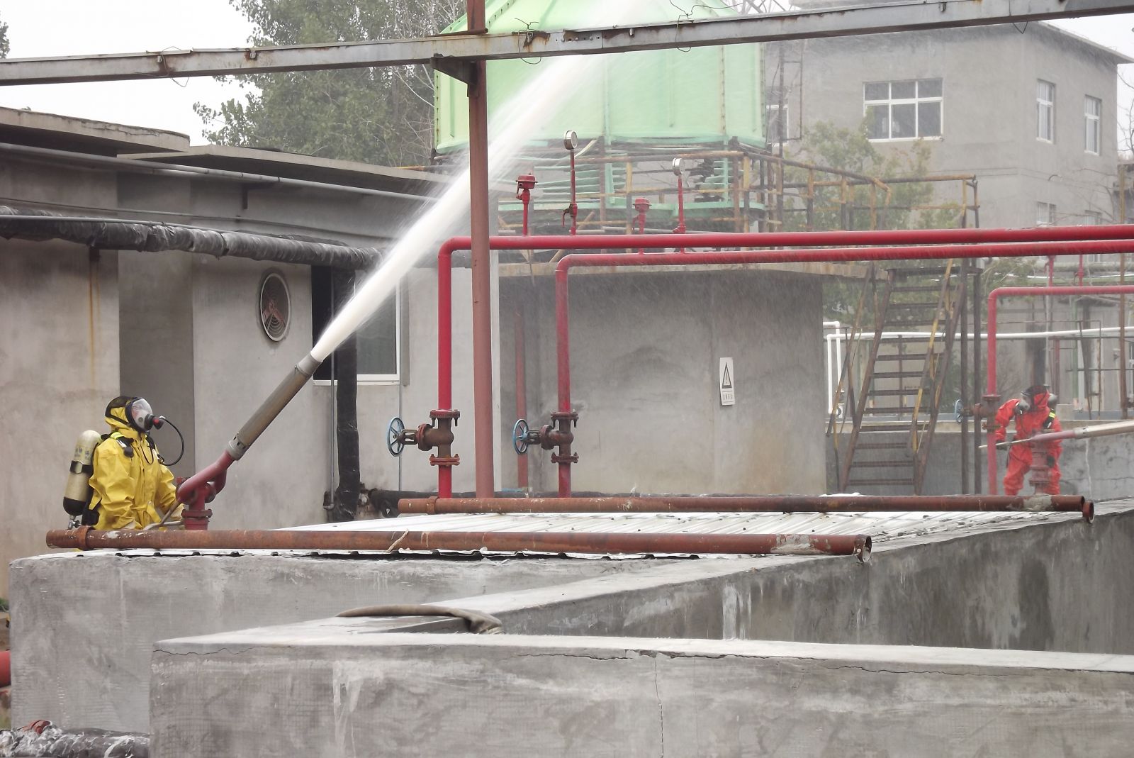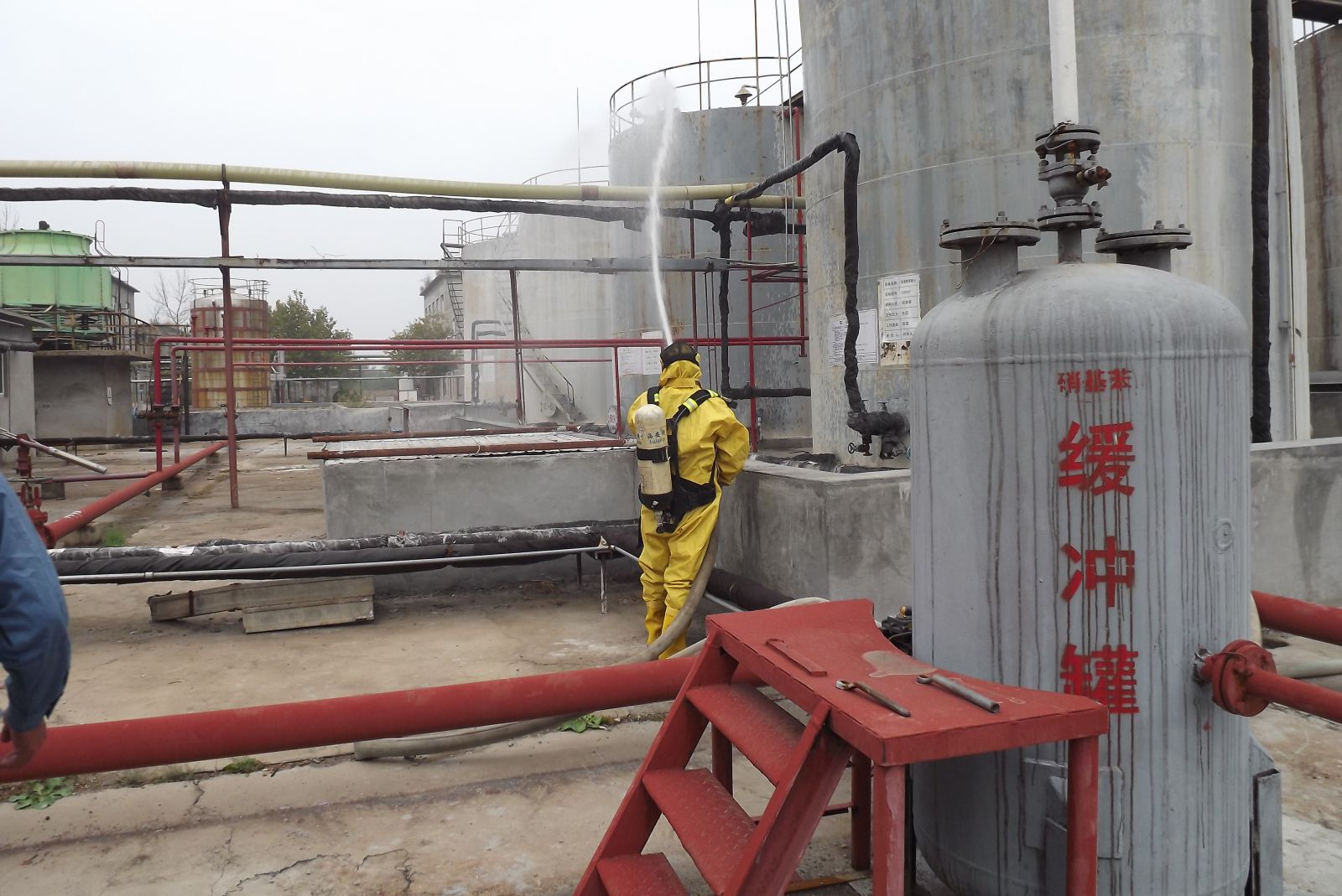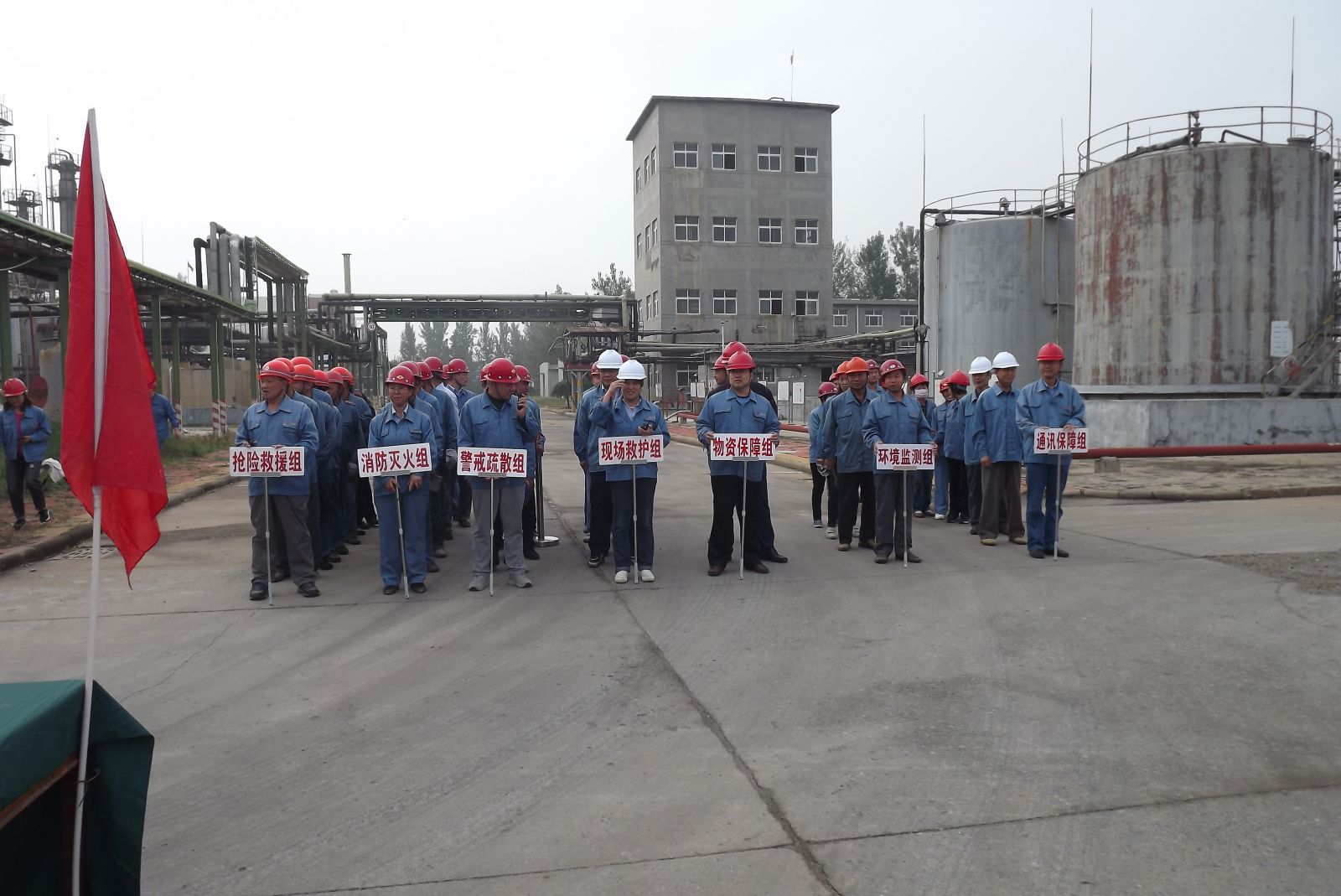 德州虹橋染料化工有限公司生產(chǎn)部為增強(qiáng)公司各部門生產(chǎn)防范意識和提高應(yīng)急處置能力,強(qiáng)化應(yīng)對各類突發(fā)事故的處理技能,提高職工快速反應(yīng)能力以及各部門協(xié)同作戰(zhàn)能力,確保在發(fā)生突發(fā)事故時(shí),能夠有效組織,快速反應(yīng),臨危不亂,最大限度地減少危害事故的發(fā)生。2019年10月11日上午組織公司各部門員工在硝基苯儲罐區(qū)進(jìn)行了應(yīng)急消防演練。
